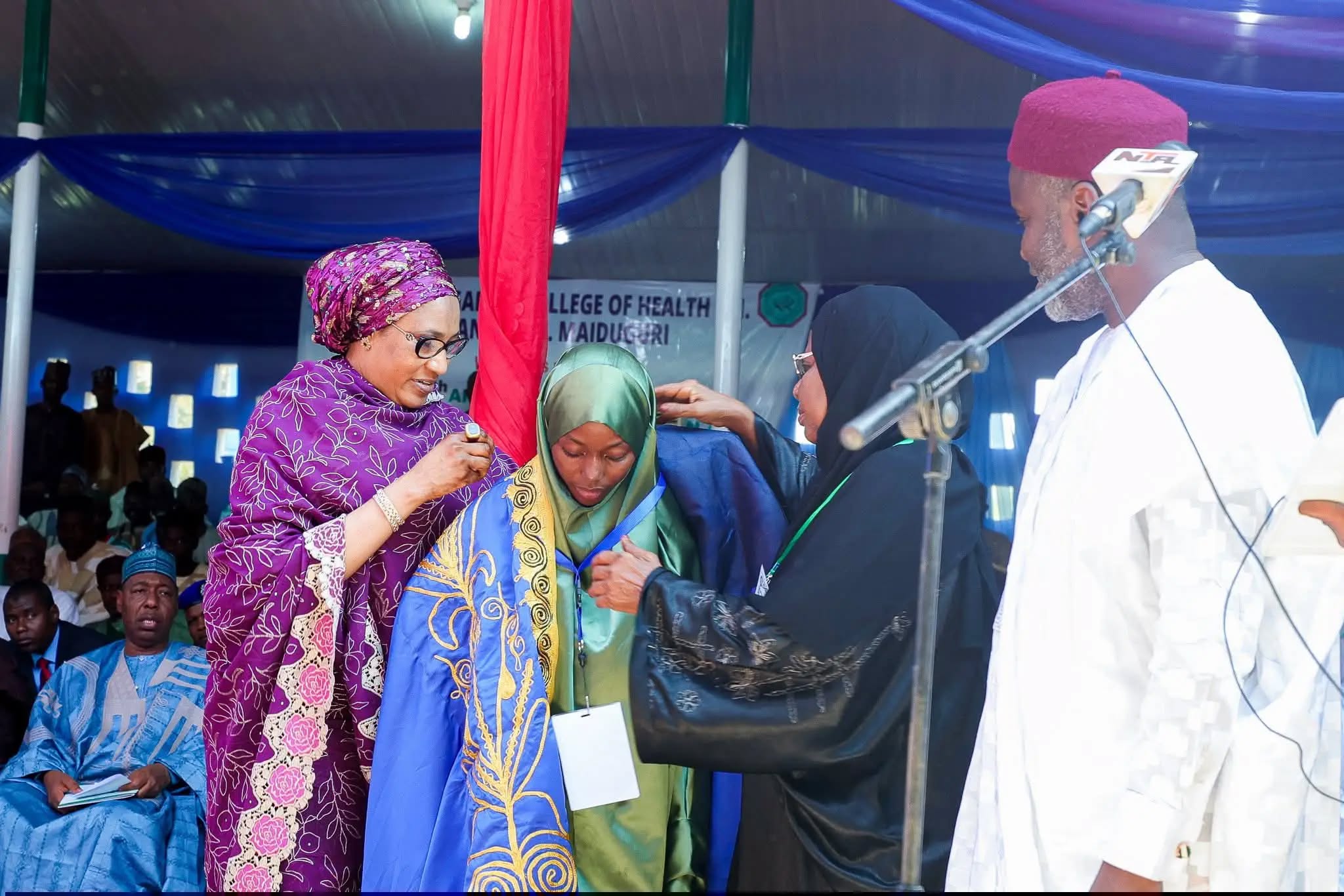 Hafsat Muhammad Sada was decorated as Gwarzuwar Shekara for the 2025 Qur’anic Recitation Competition by the Wife of the Vice President, Hajiya Nana Shettima, alongside the First Lady of Borno, Associate Professor Falmata Zullum. Musa Hameed Musa was decorated by the Shehu of Borno.