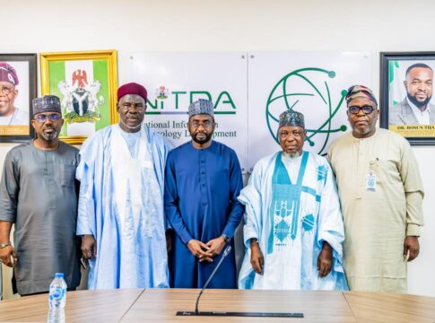 On May 5, 2025, the Chairman of the National Hajj Commission of Nigeria (NAHCON), Professor Abdullahi Saleh, led a delegation comprising Commissioner in charge of Planning, Research, Statistics, Information and Library Services (PRSILS), Commissioners in charge of Operations, Prince Anofiu Elegushi and in charge of Policy, Personnel Management and Finance, Prince Aliu Abdulrazak on a courtesy visit to the Director-General/CEO of the National Information Technology Development Agency (NITDA), Professor Kashifu Inuwa Abdullahi, to seek strategic partnership in actualizing NAHCON’s digital transformation agenda.